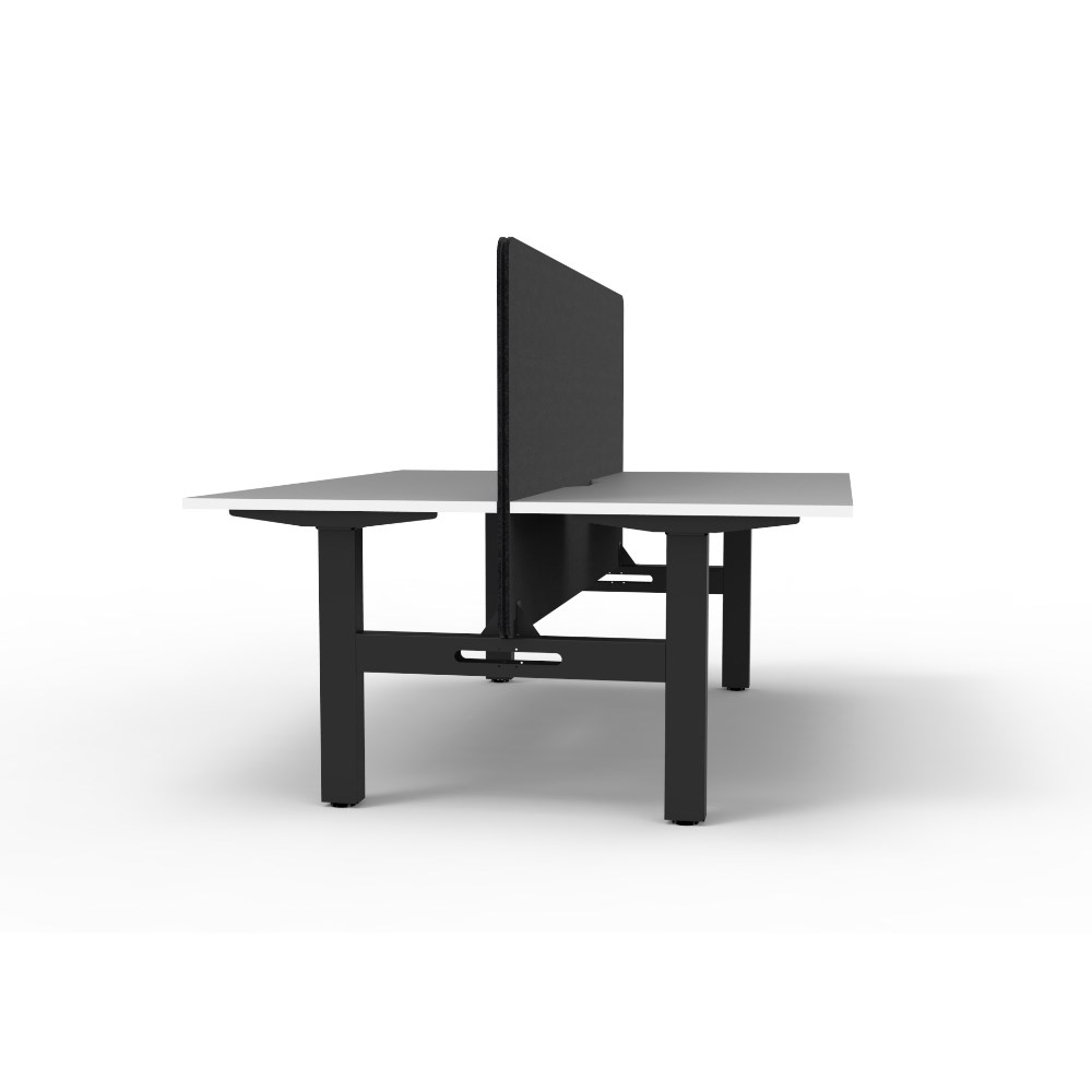 2 person back to back workstation with White top and Black Satin frame, Black Eco screen and cable tray.