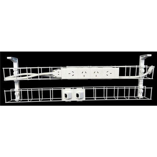 Rapidline Dual Tier Cable Basket Kit 650mm 4GPO+2Data + 1.5m Interconnecting Lead Wht
