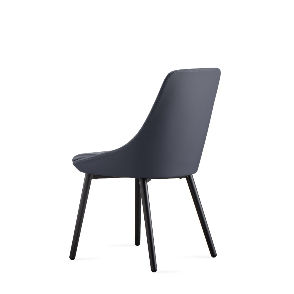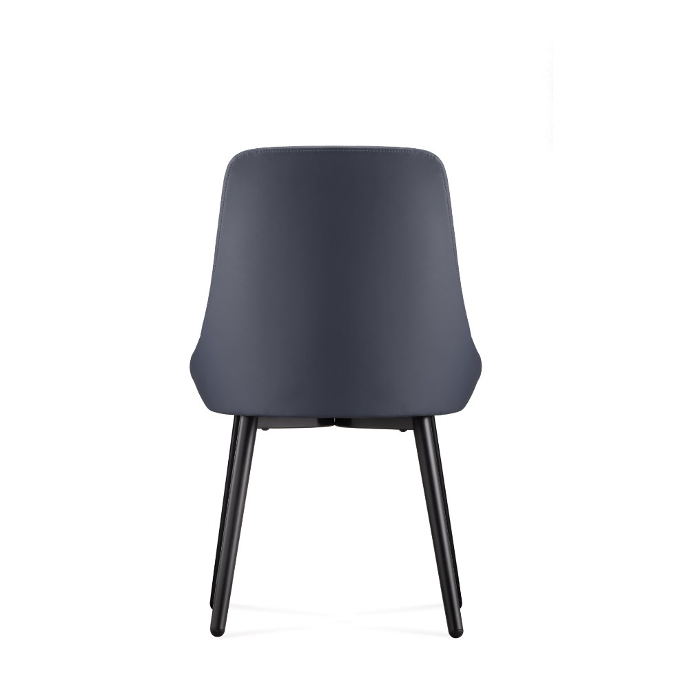 Robust steel 4 leg frame finished in black powder coat French Navy PU leather seat.