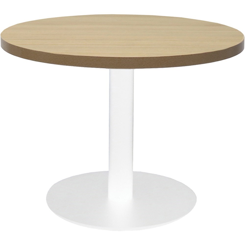 Rapidline Estillo Disc Base Round Coffee Table 600D x 450mmH Oak Top White Base