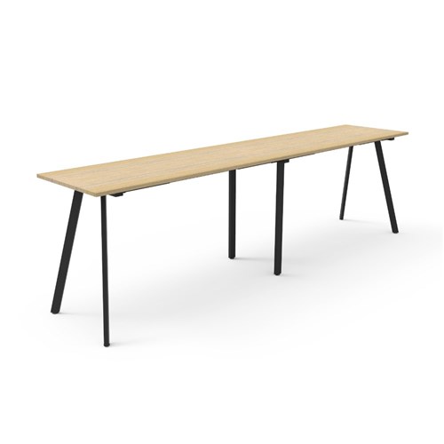 Rapidline Eternity High Bar Table 3600W x 750D x 1050mmH Natural Oak Top Black Frame