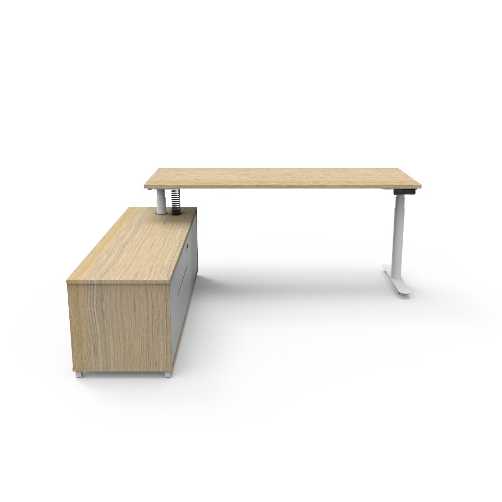 Rapidline Halo+ Executive Desk + LHS Cabinet 2020W x 2011D x 620-1270mmH Oak/White