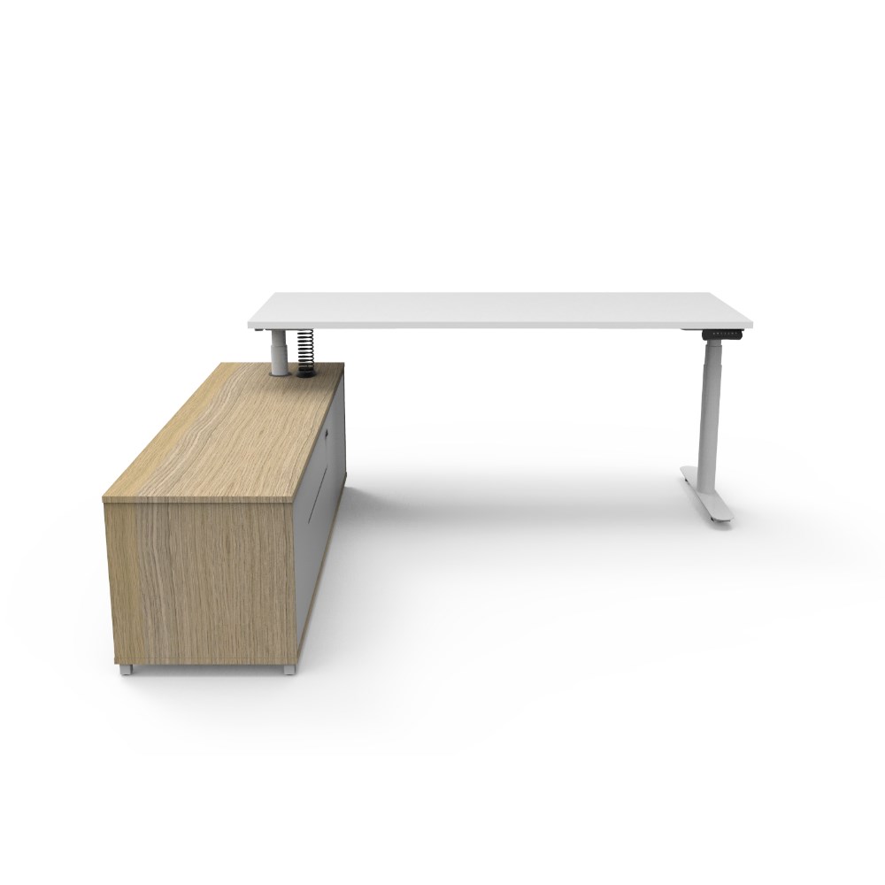 Rapidline Halo+ Executive Desk + LHS Cabinet 2020W x 2011D x 620-1270mmH Oak/White