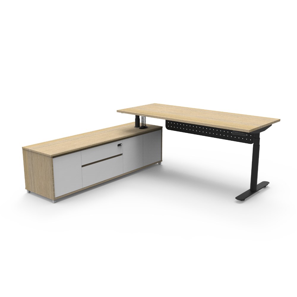 Rapidline Halo+ Executive Desk + LHS Cabinet + Panel 2020W x 1936D x 620-1270mmH Oak/White