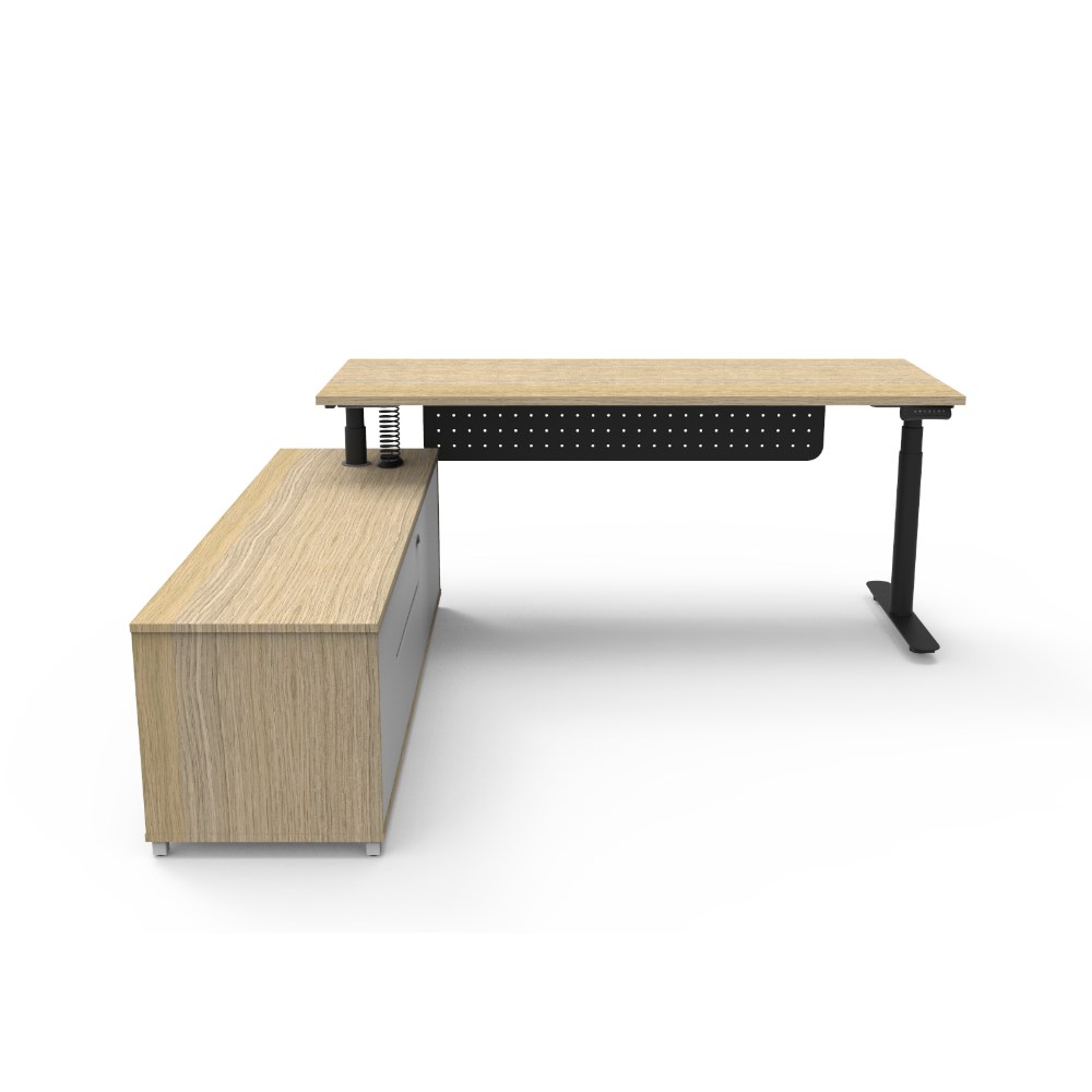 Rapidline Halo+ Executive Desk + LHS Cabinet + Panel 2020W x 1936D x 620-1270mmH Oak/Black