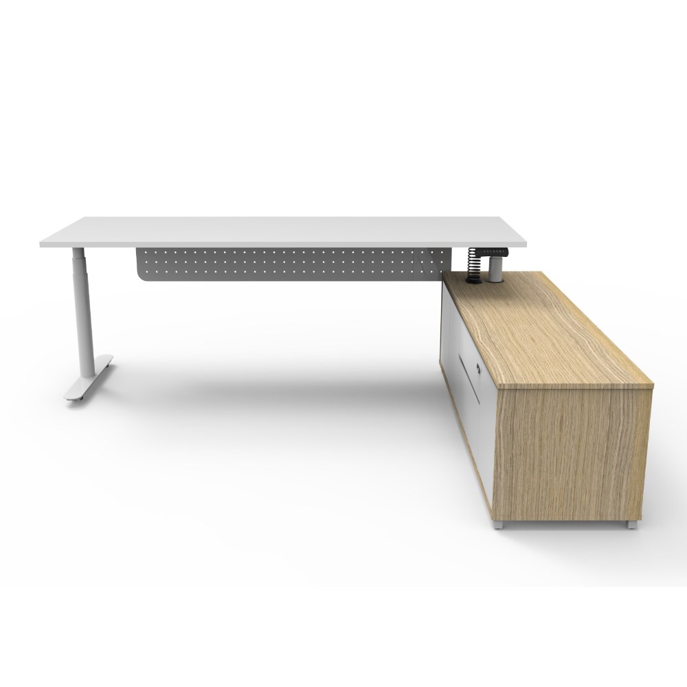 Rapidline Halo+ Executive Desk + RHS Cabinet + Panel 2270W x 1936D x 620-1270mmH White/Wht