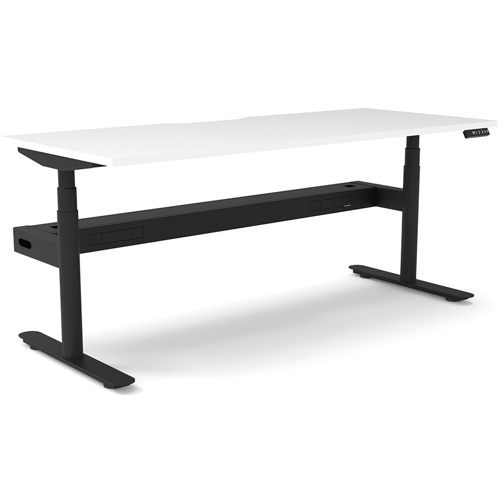 70mm diameter round column legs. 700mm wide foot size with adjustable leveling feet, return foot: 700mm. Comes with cable tray for cable management.
