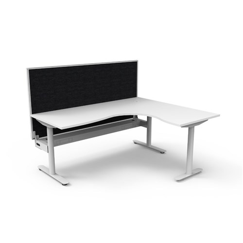 Rapidline Halo Static Corner Workstation + Screen + Tray 1800/1500W x 1330mmH White/Blk