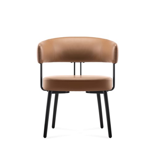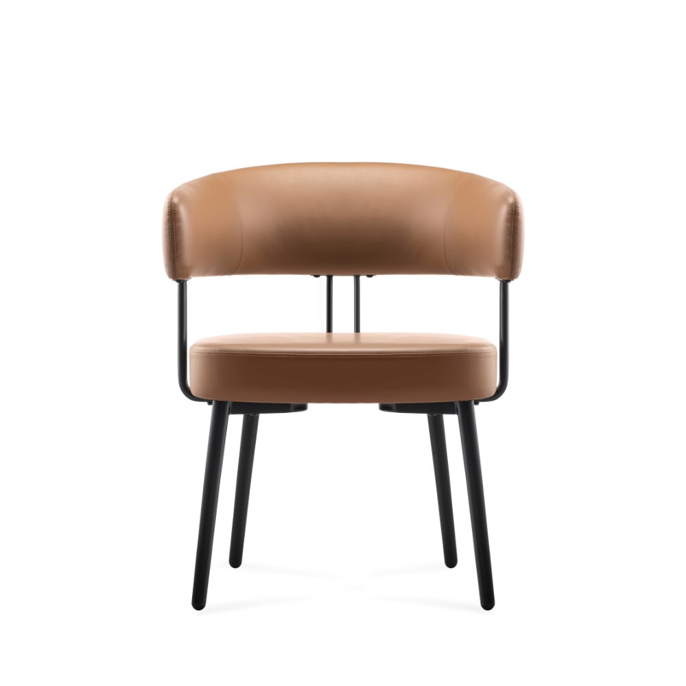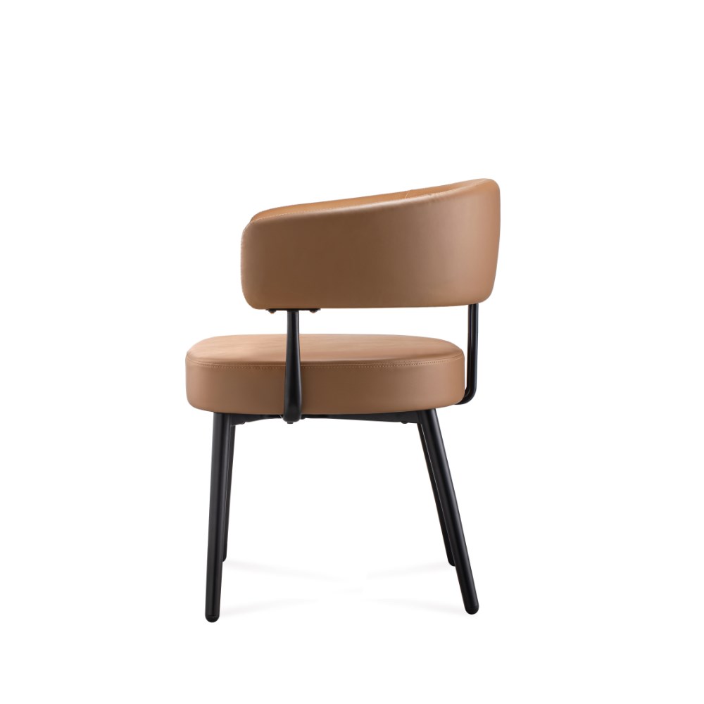 Robust steel 4 leg frame finished in black powder coat Amber PU leather seat.