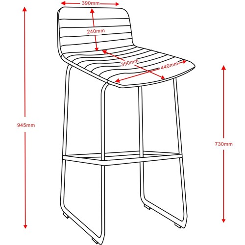 Seat Width: 440mm. Seat Depth: 390mm. Seat Height: 730mm. Back Height: 240mm. Back Width: 440mm - 390mm.