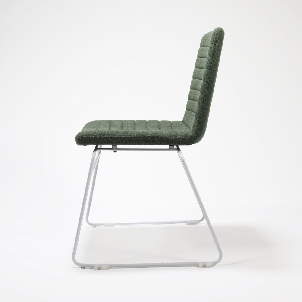 Rapidline Pixel Visitor Chair White Sled Base Olive Fabric Seat
