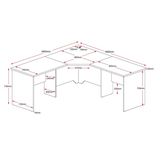 Rapidline Rapid Worker Corner Workstation 1800/1800W x 750D x 730mmH Cherry And Ironstone
