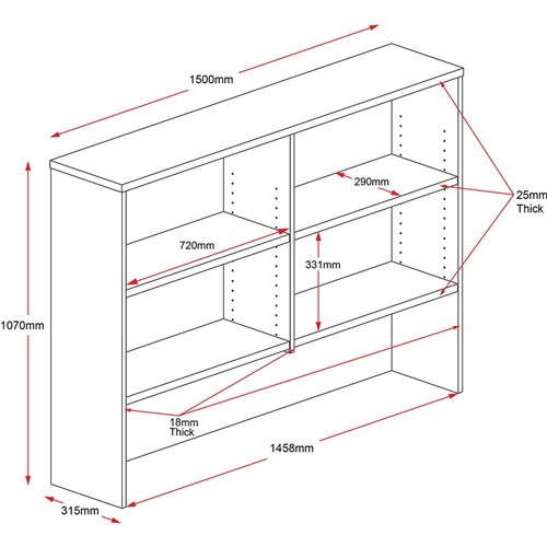 Rapidline Rapid Worker Overhead Hutch 1500W x 315D x 1070mmH Cherry And Ironstone