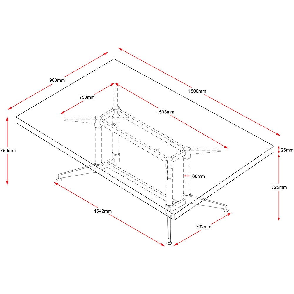 Rapidline Typhoon Boardroom Table 1800W x 900D x 750mmH Cherry Top Black Frame