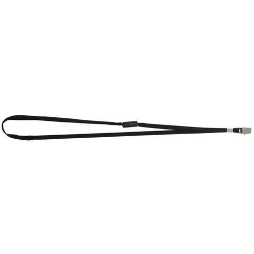 Breakaway lanyard, breaks at plastic safety clip if pulled or tugged.