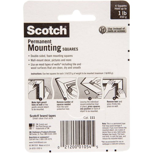 Heavy duty permanent mounting solution in pre-cut squares.