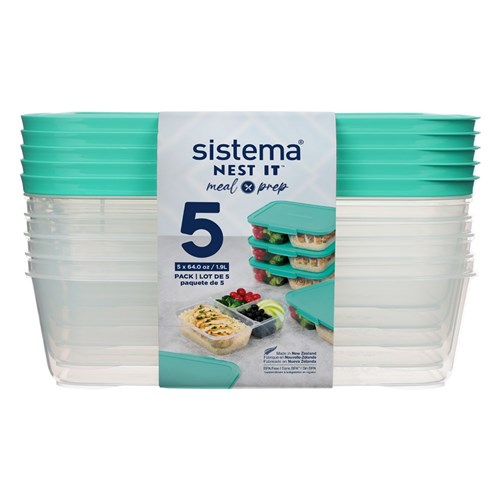 Sistema Nest It Plastic Meal Prep Food Storage Container 1.9L Clear Pack Of 5