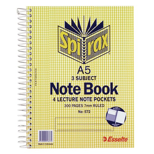 SPIRAX 572 3 SUBJECT NOTEBOOK A5 150 Leaf 210x158mm S/O