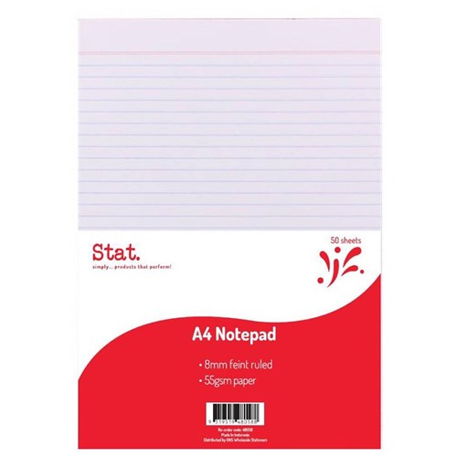 Stat Notepad A4 8mm Ruled 55Gsm White 50 Sheet