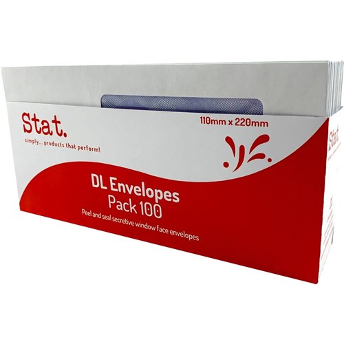 Stat Peel And Seal Envelope DL Window Face Secretive White Pack of 100