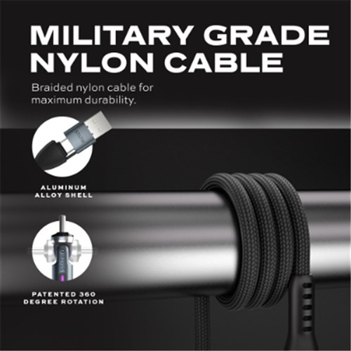 Statik 360 Pro USB-A/C To Lightning/USB-C/Micro USB Cable Universal 2 Meter Black
