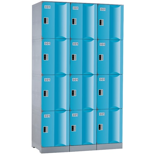 Steelco ABS Plastic Locker 4 Door Bank Of 3 1146W x 500D x 1940mmH Assorted Colours