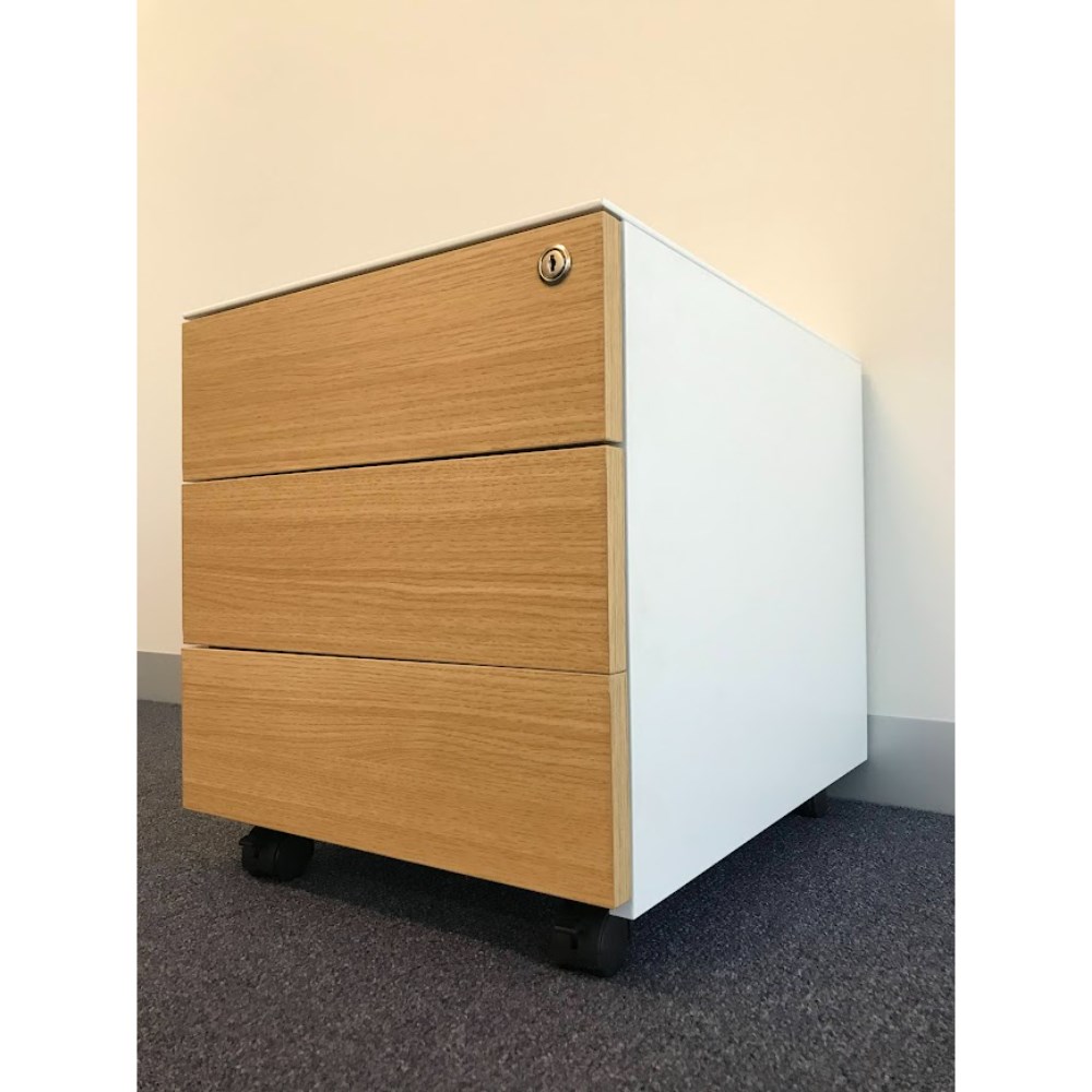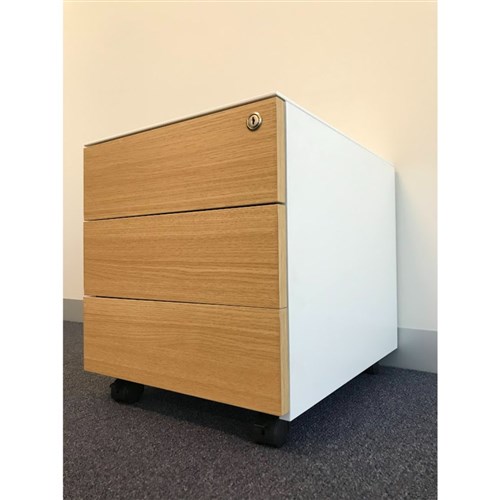 Steelco Hybrid Trimline Mobile Pedestal 2 Drawer 1 File 390W x 500D x 615mmH White