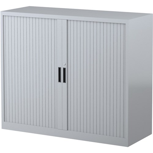Steelco Tambour Door Cupboard Includes 2 Shelves 1200W x 463D x 1015mmH Silver Grey