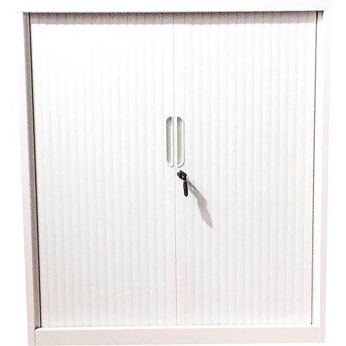 Steelco Tambour Door Cupboard Includes 3 Shelves 900W x 463D x 1200mmH White Satin