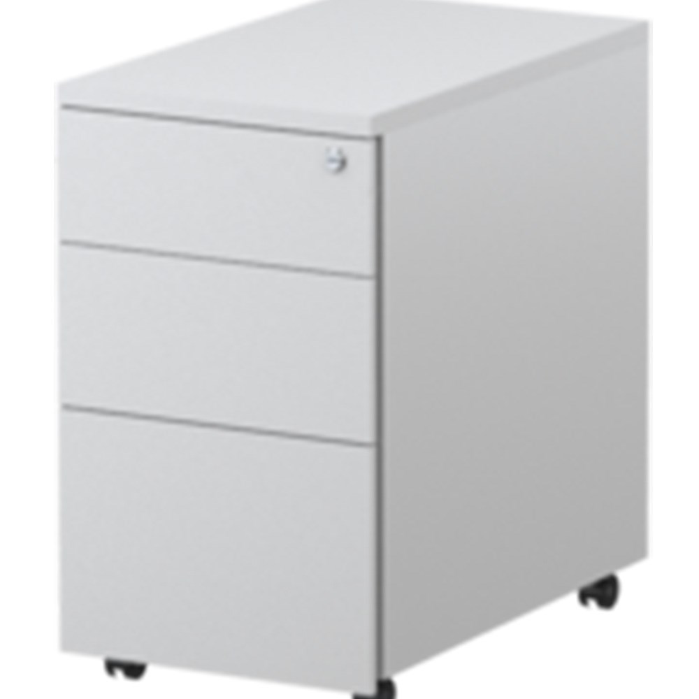 A modern looking mobile pedestal, designed to take up a smaller footprint under an employees workstation.