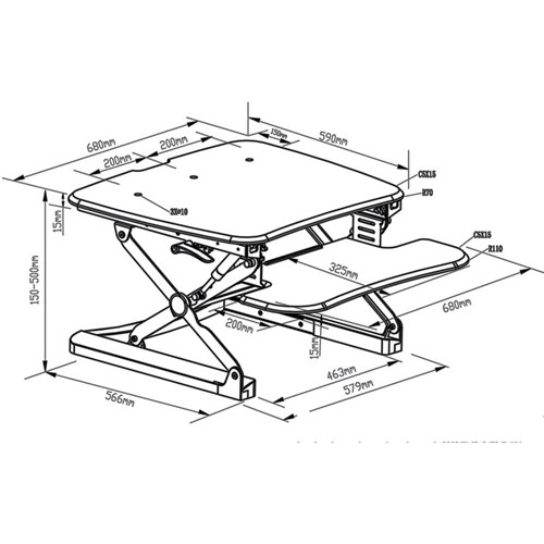 Sylex Arise Deskalator Sit-Stand Riser 680W x 590D x 150-500mmH Black + BONUS