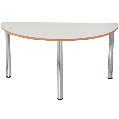 Sylex Quorum Geometry Meeting Table Half Round 1500W x 750D x 740mmH Chrome And Off White