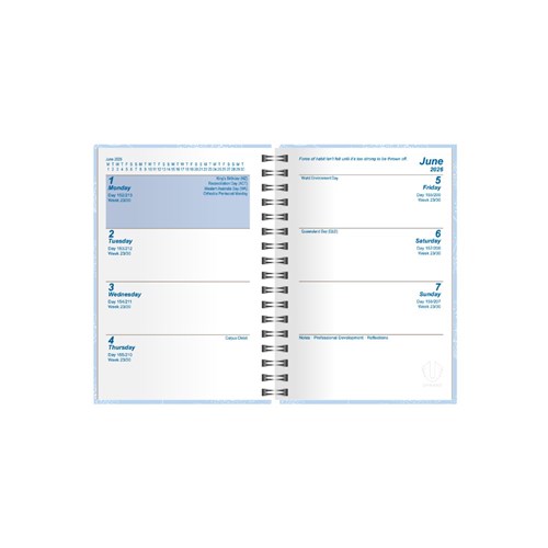 Upward Fashion Diary A6/7 Week To View Blue Sky
