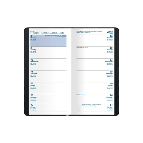 Upward Standard Pocket Diary A6/7 Week To View Black