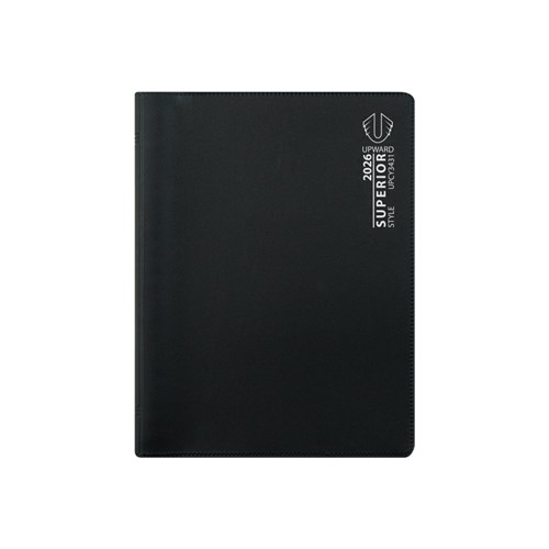 Featuring a padded, phthalate free, PVC cover, pockets for storing business cards and wire-o binding to allow the diary to lie completely flat when open.