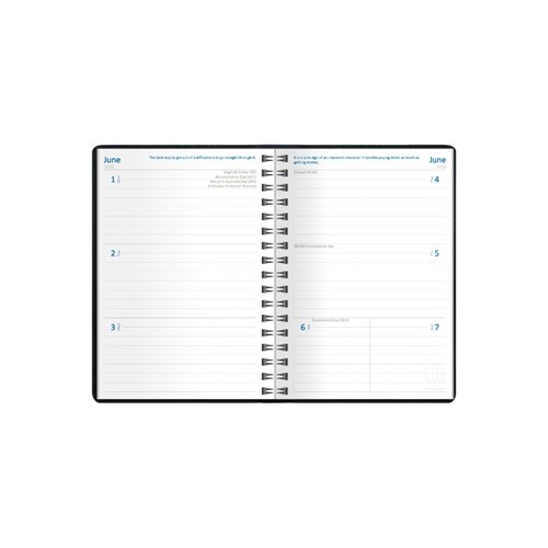 Featuring a padded, phthalate free, PVC cover, pockets for storing business cards and wire-o binding to allow the diary to lie completely flat when open.
