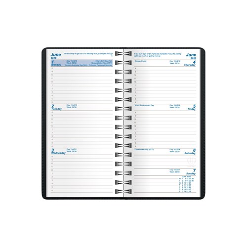 Upward Superior Pocket Diary A6/7 Week To View Black