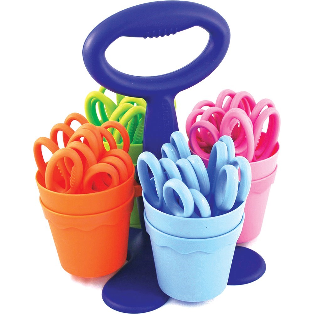 Comes stocked with 24 x blunt 127mm kids scissors that both right and left handed kids can use.