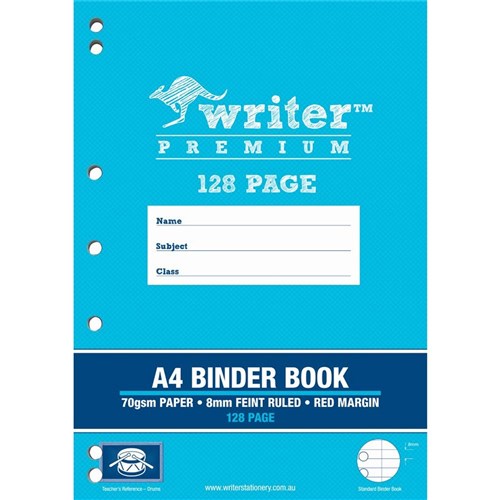 Writer Premium Binder Books feature heavy duty covers, high quality white 70gsm paper with blue ruled lines and a red margin